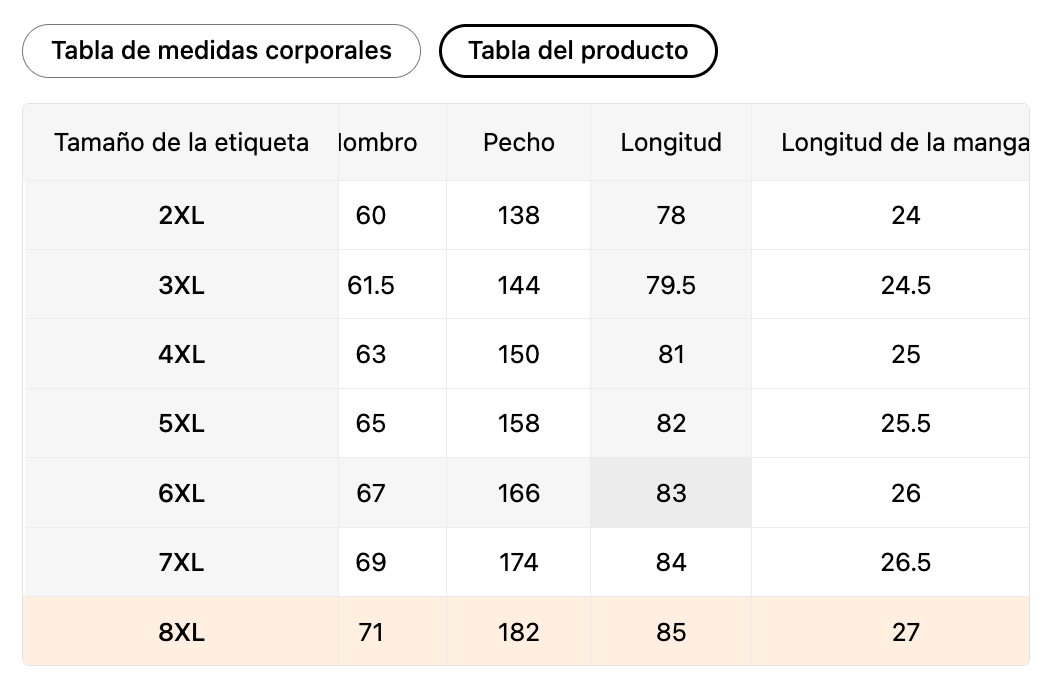 | Tamaño de la etiqueta | Hombro | Pecho | Longitud | Longitud de la manga |