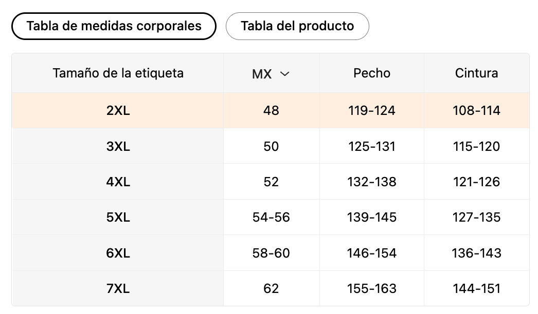 Tamaño de la etiqueta | MX | Pecho | Cintura |