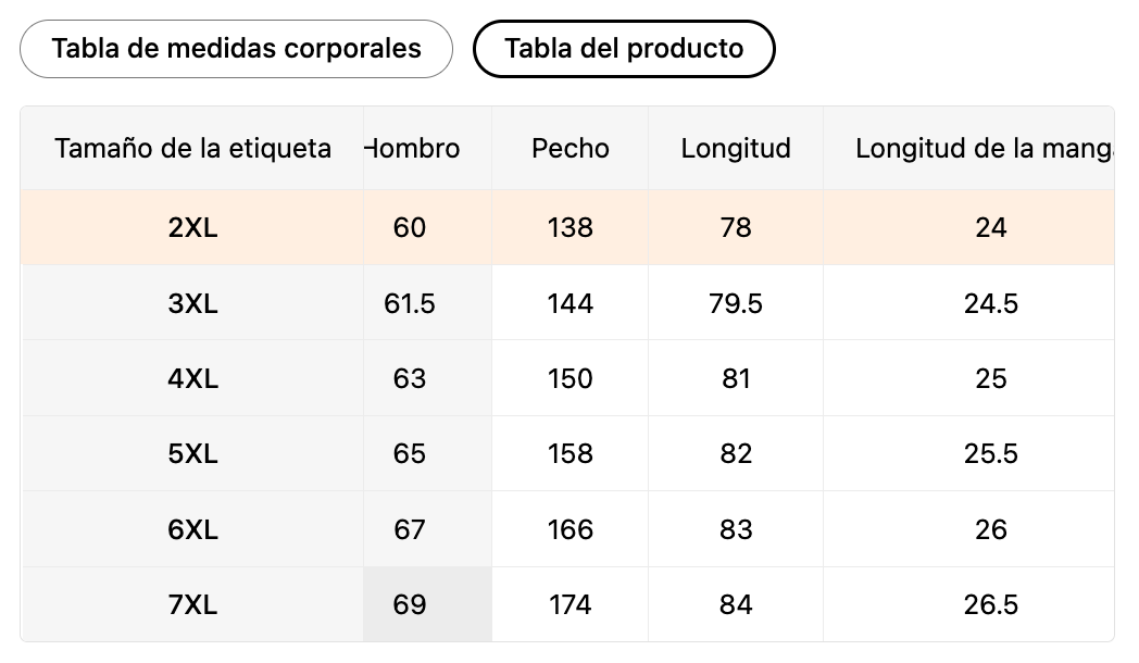 Tamaño de la etiqueta | Hombro | Pecho | Longitud | Longitud de la manga |