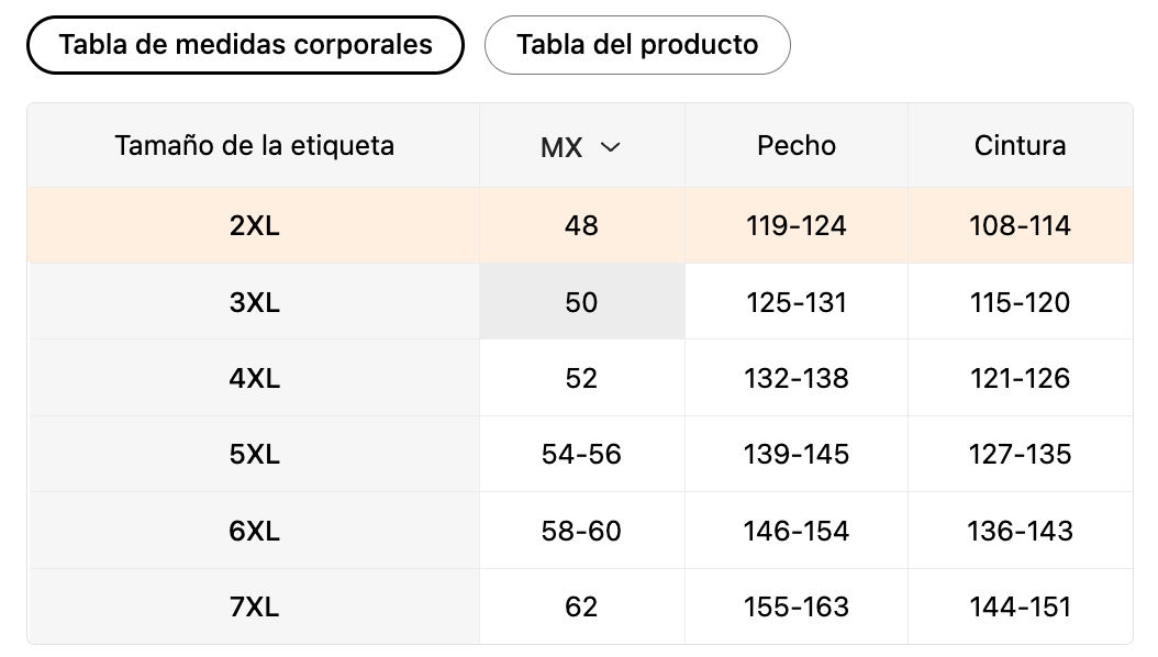 Tamaño de la etiqueta | MX | Pecho | Cintura |