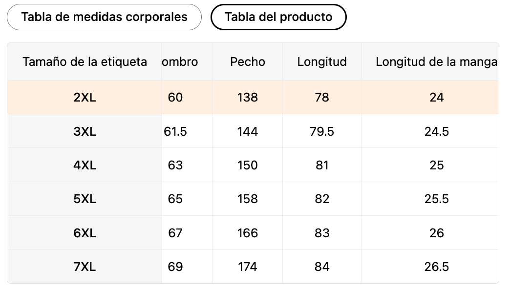 Tamaño de la etiqueta | Hombro | Pecho | Longitud | Longitud de la manga |