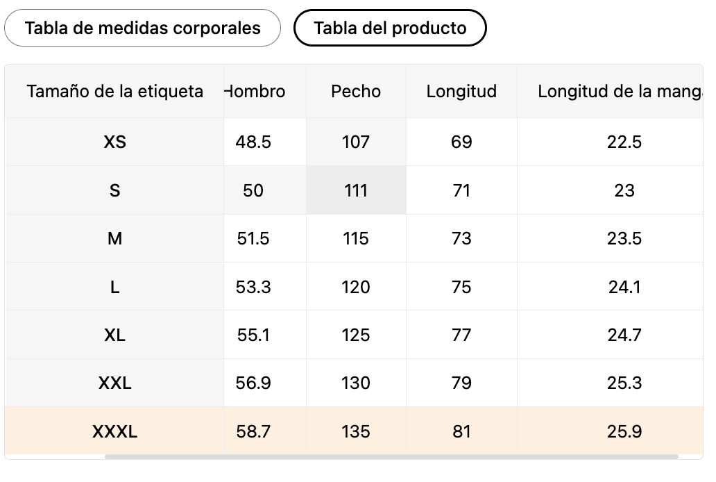 Tamaño de la etiqueta | Hombro | Pecho | Longitud | Longitud de la manga |