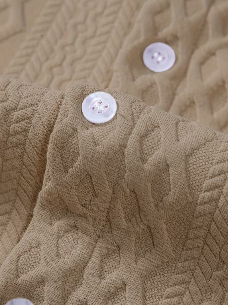 Esta camisa de manga corta combina un diseño vintage con una textura geométrica que aporta carácter y estilo. Fabricada en una mezcla transpirable, ofrece comodidad y frescura ideal para el verano. Su base café con cuello, brinda un estilo elegante, mientras que su corte en forma de H garantiza un ajuste relajado. Perfecta para looks casuales. Un básico sofisticado para vestir con madurez y autenticidad.