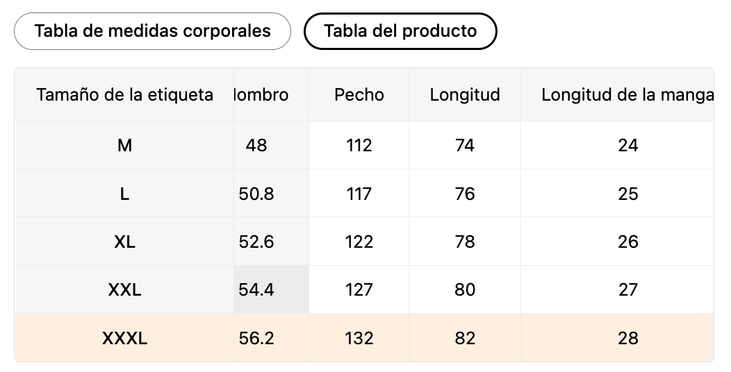 Tamaño de la etiqueta | Hombro | Pecho | Longitud | Longitud de la manga |