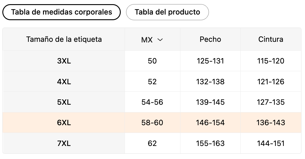 Tamaño de la etiqueta | MX | Pecho | Cintura |