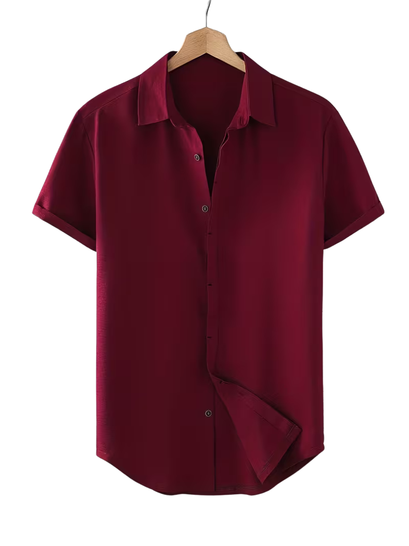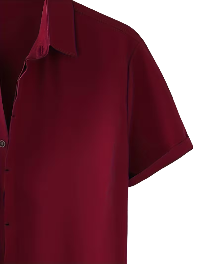 Camisa manga corta con un tejido no elástico, esta camisa es perfecta para el verano. Con un clásico cuello solapa y un detalle de nudo, botones escondidos que ofrecen un estilo elegante, casual y fresco. Ideal para adultos que buscan comodidad sin perder estilo.