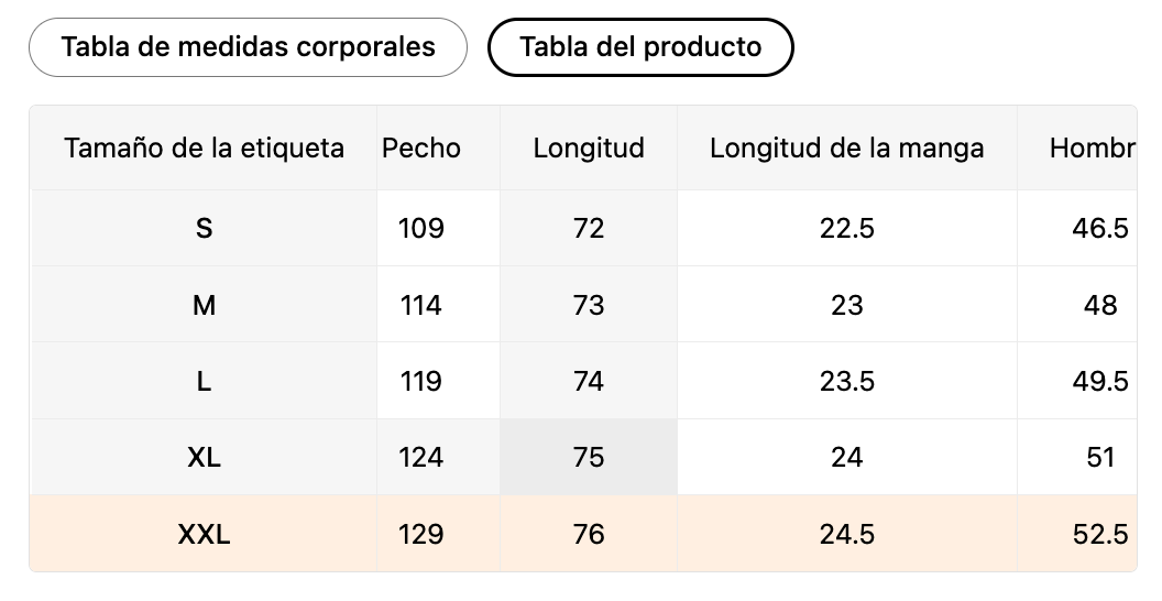 | Tamaño de la etiqueta | Pecho | Longitud | Longitud de la manga | Hombro |