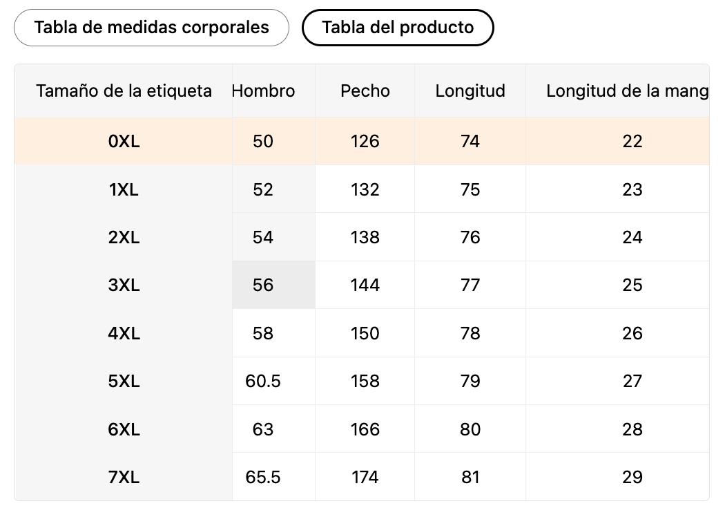 | Tamaño de la etiqueta | Hombro (cm) | Pecho (cm) | Longitud (cm) | Longitud de la manga (cm) |