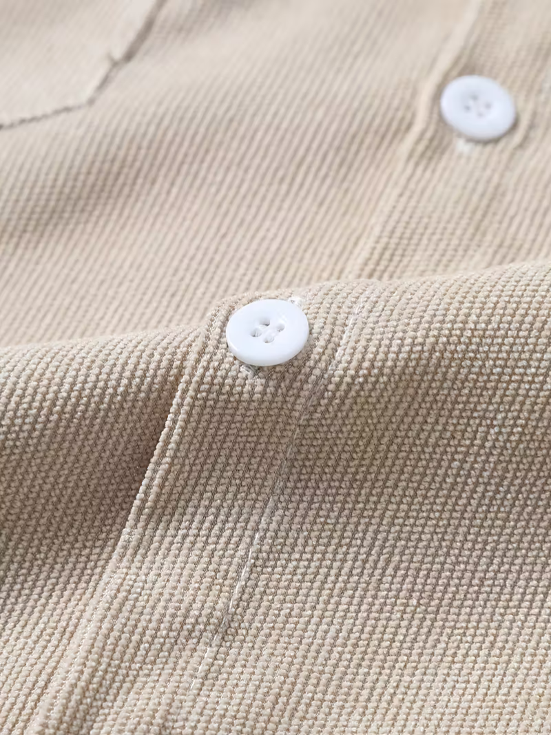 Camisa de pana, diseñada para proporcionar comodidad y durabilidad en tu guardarropa de otoño e invierno. Su corte regular y tela no estirable ofrecen un ajuste consistente, mientras que el cuello de solapa y los botones frontales le dan un acabado clásico y versátil. Ideal para un estilo casual que combina con múltiples prendas. El material de poliéster facilita el mantenimiento, recomendándose lavado a mano o limpieza en seco para preservar su calidad.