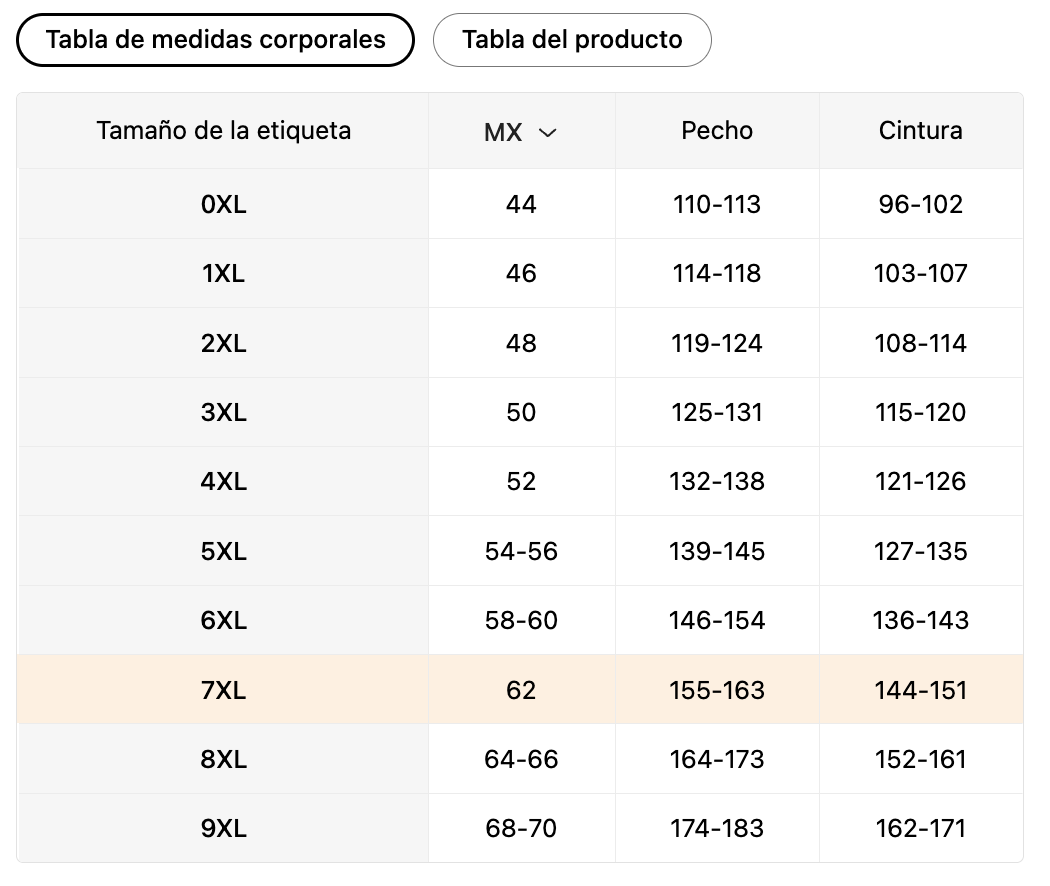 Tamaño de la etiqueta | MX | Pecho | Cintura |