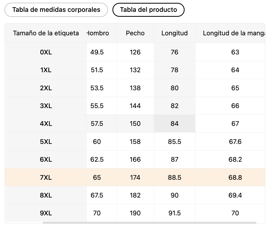 Tamaño de la etiqueta | Hombro | Pecho | Longitud | Longitud de la manga |
