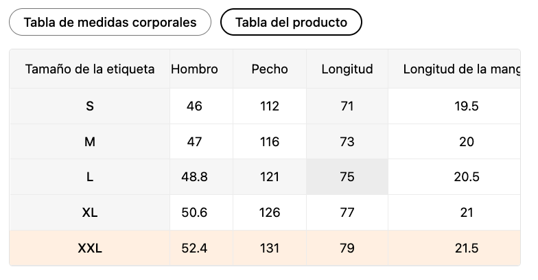 | Tamaño de la etiqueta | Hombro (cm) | Pecho (cm) | Longitud (cm) | Longitud de la manga (cm) |