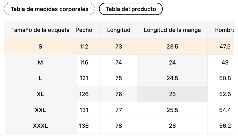 | Tamaño de la etiqueta | Pecho (cm) | Longitud (cm) | Longitud de la manga (cm) | Hombro (cm) |