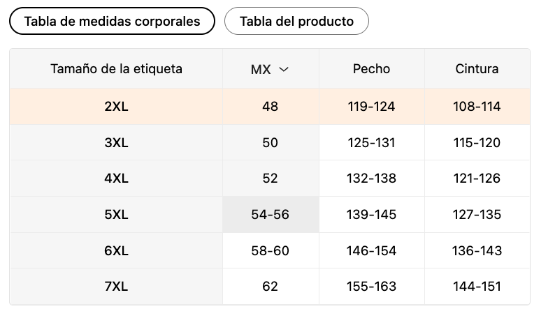 | Tamaño de la etiqueta | MX | Pecho (cm) | Cintura (cm) |