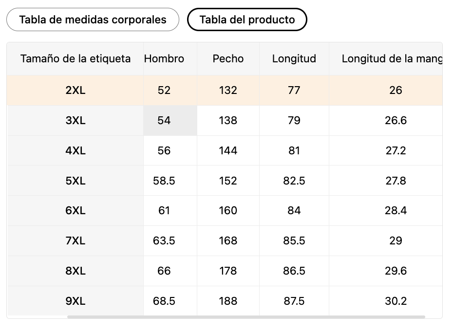 | Tamaño de la etiqueta | Hombro (cm) | Pecho (cm) | Longitud (cm) | Longitud de la manga (cm) |