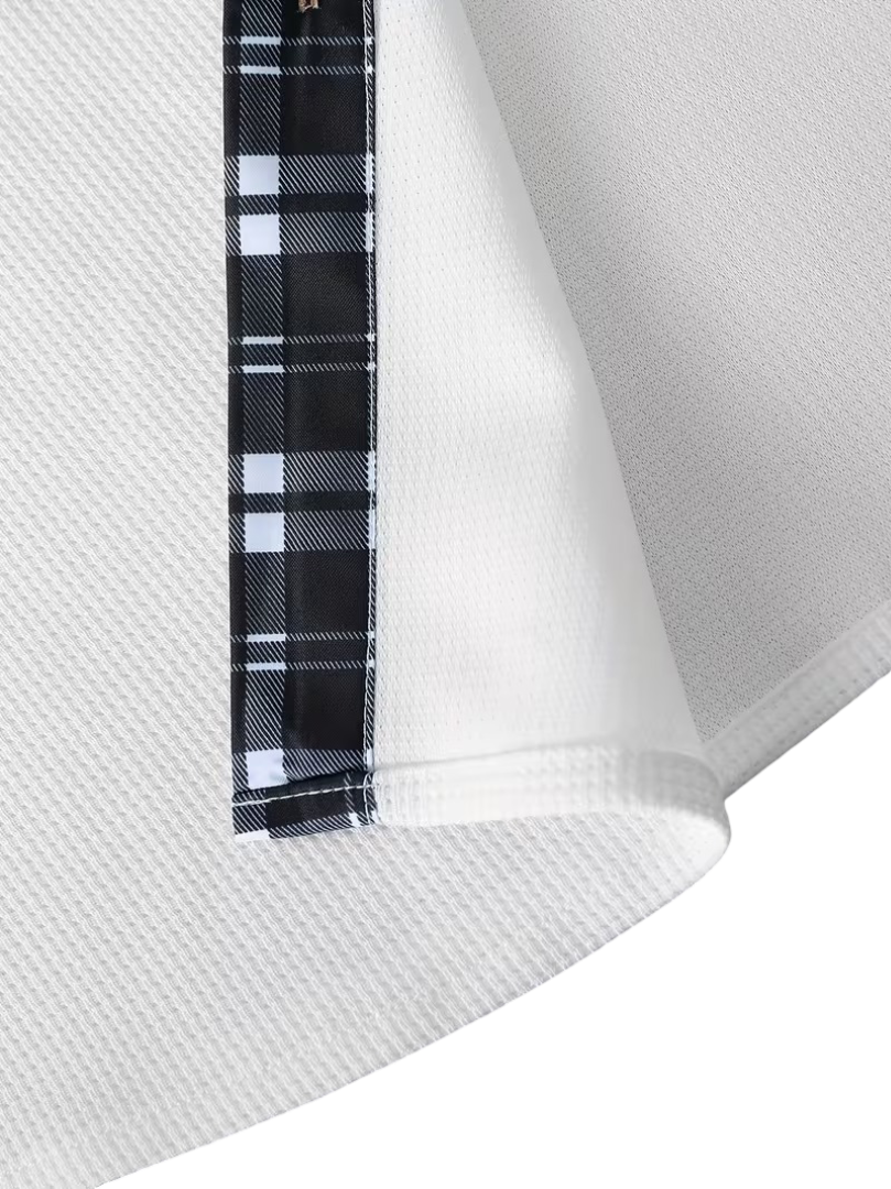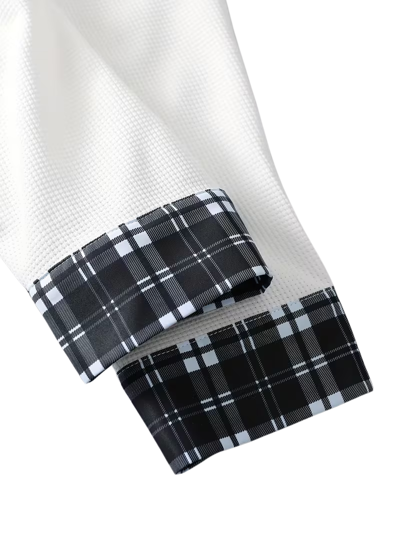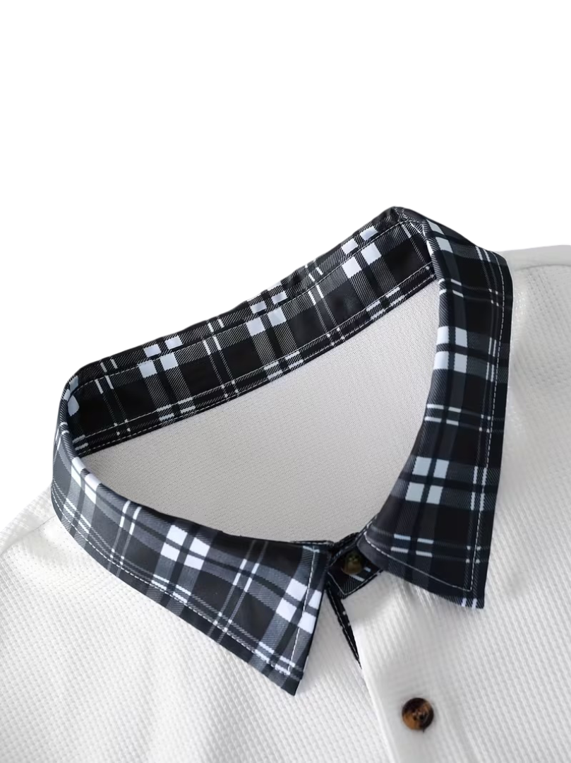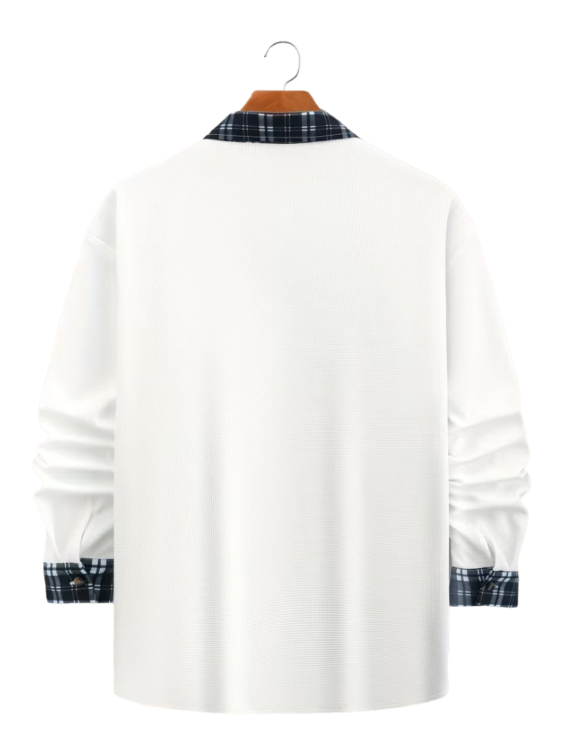 Camisa casual de manga larga confeccionada en 100% poliéster con tejido texturizado que ofrece durabilidad y comodidad durante todo el año. Diseño con patrón tartán clásico y cuello de solapa, ideal para crear looks versátiles en cualquier estación. La tela no elástica mantiene su forma y estructura, mientras que el corte regular proporciona un ajuste cómodo para tallas grandes. Perfecta para combinar con pantalones casuales o jeans. Fácil de cuidar: lavar a máquina o limpiar en seco profesionalmente.