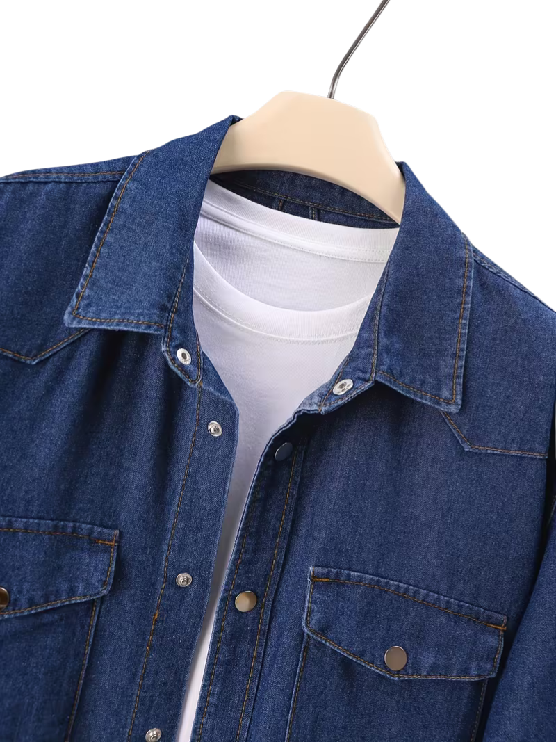 Camisa de mezclilla vintage lavada con manga larga, confeccionada en una mezcla de algodón que ofrece durabilidad y comodidad. Presenta botones casuales, bolsillos funcionales en el pecho y cuello de solapa clásico. Su ajuste regular la hace versátil para diferentes tipos de cuerpo, mientras que el lavado vintage le proporciona un carácter auténtico y desenfadado. Ideal para la transición entre primavera y otoño, funciona tanto como pieza casual diaria como prenda de capas. El tejido no elástico mantiene su forma, y su cuidado es sencillo con lavado a máquina o limpieza en seco.
