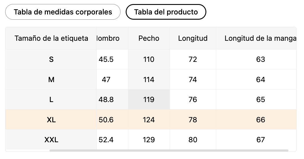 Tamaño de la etiqueta | Hombro | Pecho | Longitud | Longitud de la manga |