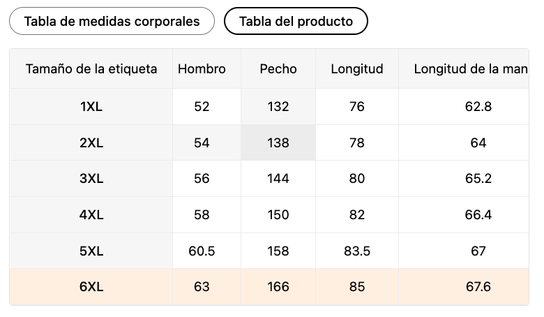 | Tamaño de la etiqueta | Hombro (cm) | Pecho (cm) | Longitud (cm) | Longitud de la manga (cm) |