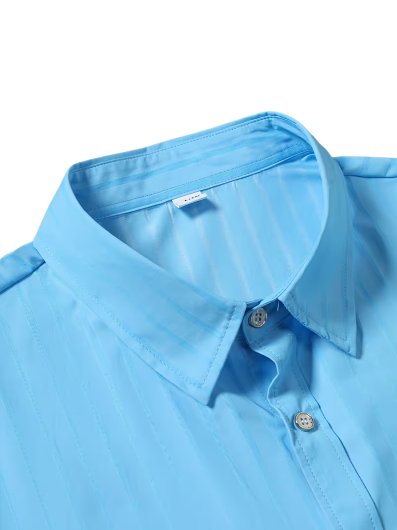 Camisa diseñada para quienes buscan versatilidad y comodidad. Presenta cuello clásico a punta, botones blancos delanteros. La tela tejida no estirable mantiene su forma durante todo el día, ideal para ambientes casuales y profesionales. Disponible en tallas grandes, ofrece un corte regular que se adapta a diferentes tipos de cuerpo. Su composición de tejido puro facilita el cuidado mediante lavado a mano o limpieza en seco. Perfecta para cualquier estación del año.
