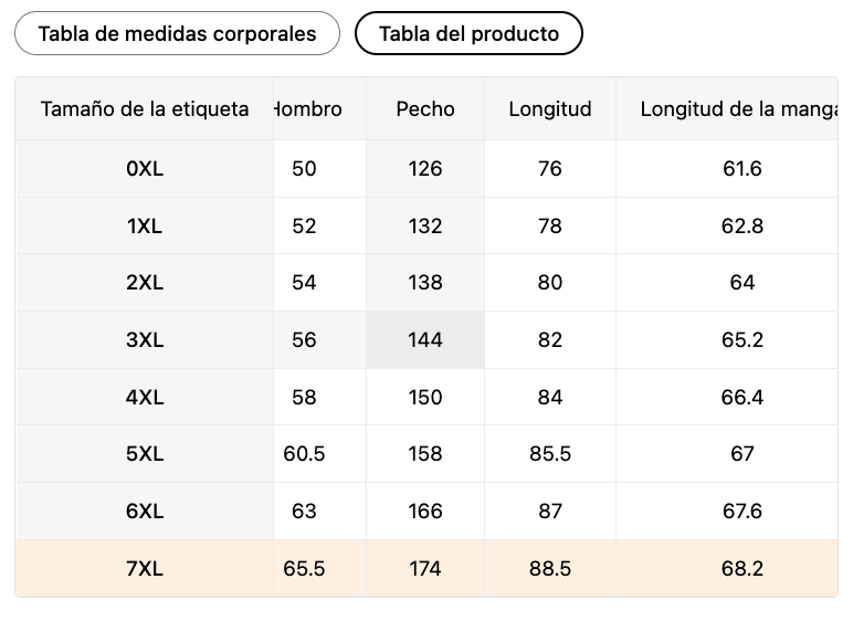 | Tamaño de la etiqueta | Hombro (cm) | Pecho (cm) | Longitud (cm) | Longitud de la manga (cm) |