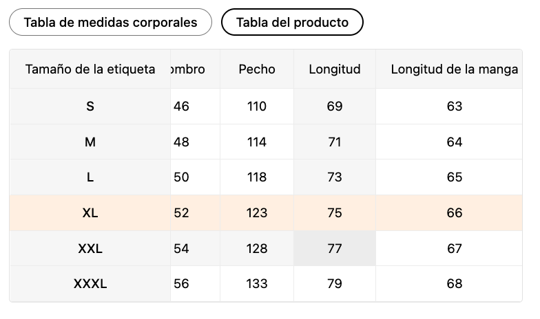 | Tamaño de la etiqueta | Hombro (cm) | Pecho (cm) | Longitud (cm) | Longitud de la manga (cm) |