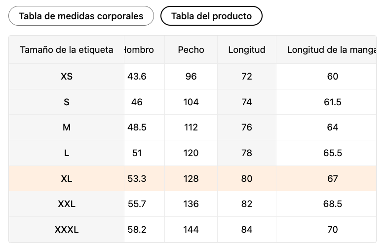 | Tamaño de la etiqueta | Hombro (cm) | Pecho (cm) | Longitud (cm) | Longitud de la manga (cm) |