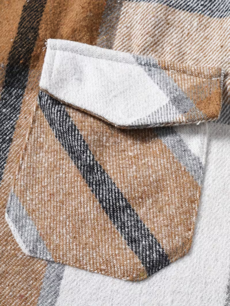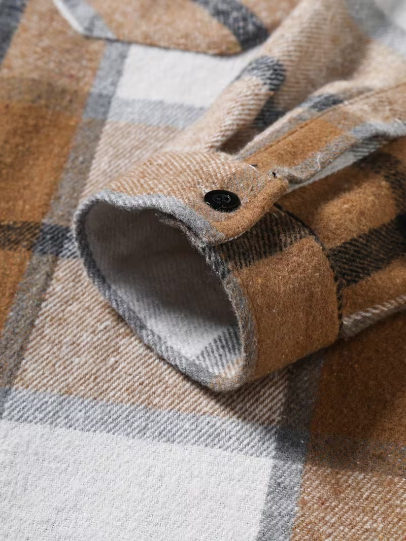 Camisa de cuadros en tartán beige, marrón y blanco, confeccionada en tejido de alta calidad. Diseño versátil que combina elegancia formal con comodidad casual, perfecta para la transición entre otoño e invierno. Cuello de solapa clásico y cierre de botones que proporcionan un acabado pulido. La tela tejida no elástica garantiza durabilidad y mantiene su forma impecable tras múltiples usos. Corte regular que favorece la silueta. Ideal para crear looks sofisticados en la oficina o atuendos relajados en el día a día. Cuidado sencillo: lavar a mano o llevar a limpieza en seco para preservar la integridad del tejido.