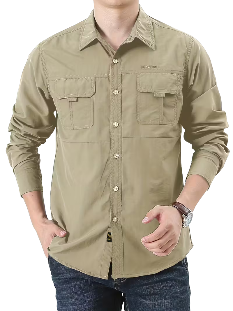 Camisa de pesca diseñada para aventuras al aire libre. Ofrece protección antimosquitos ideal para senderismo y actividades de fin de semana. Su ajuste holgado proporciona comodidad máxima, mientras que la manga media y el cuello en V garantizan ventilación óptima en climas cálidos. El material ligero con ligero estiramiento permite libertad de movimiento. Perfecta para exploradores que buscan funcionalidad y confort en un solo prenda. Fácil de mantener: lavar a máquina únicamente.