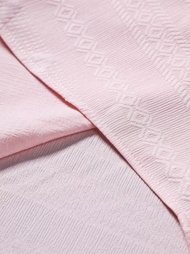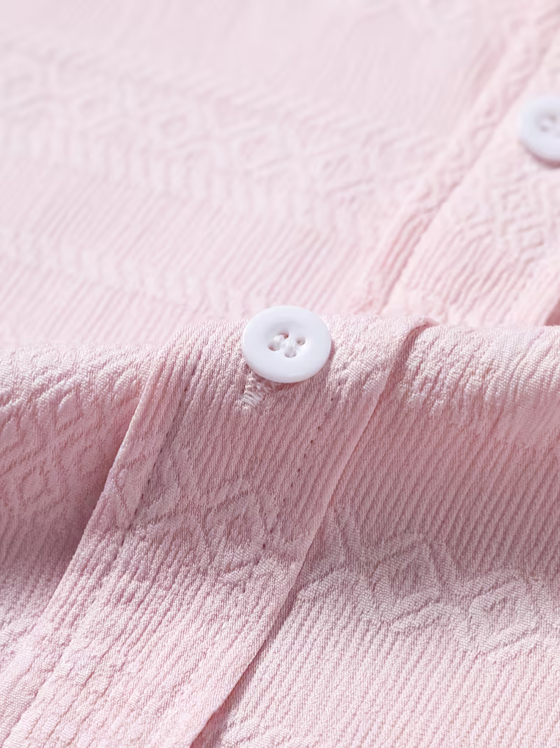 Confeccionada con un toque de elasticidad para mayor comodidad. Presenta un elegante patrón geométrico en tejido jacquard que combina sofisticación con versatilidad casual. Diseño de manga larga con solapa y cierre de botones, ideal para cualquier temporada. Su corte regular se adapta perfectamente a diferentes siluetas. Mantén su calidad lavando a mano o limpieza en seco. Una pieza versátil que eleva tu guardarropa con estilo contemporáneo.