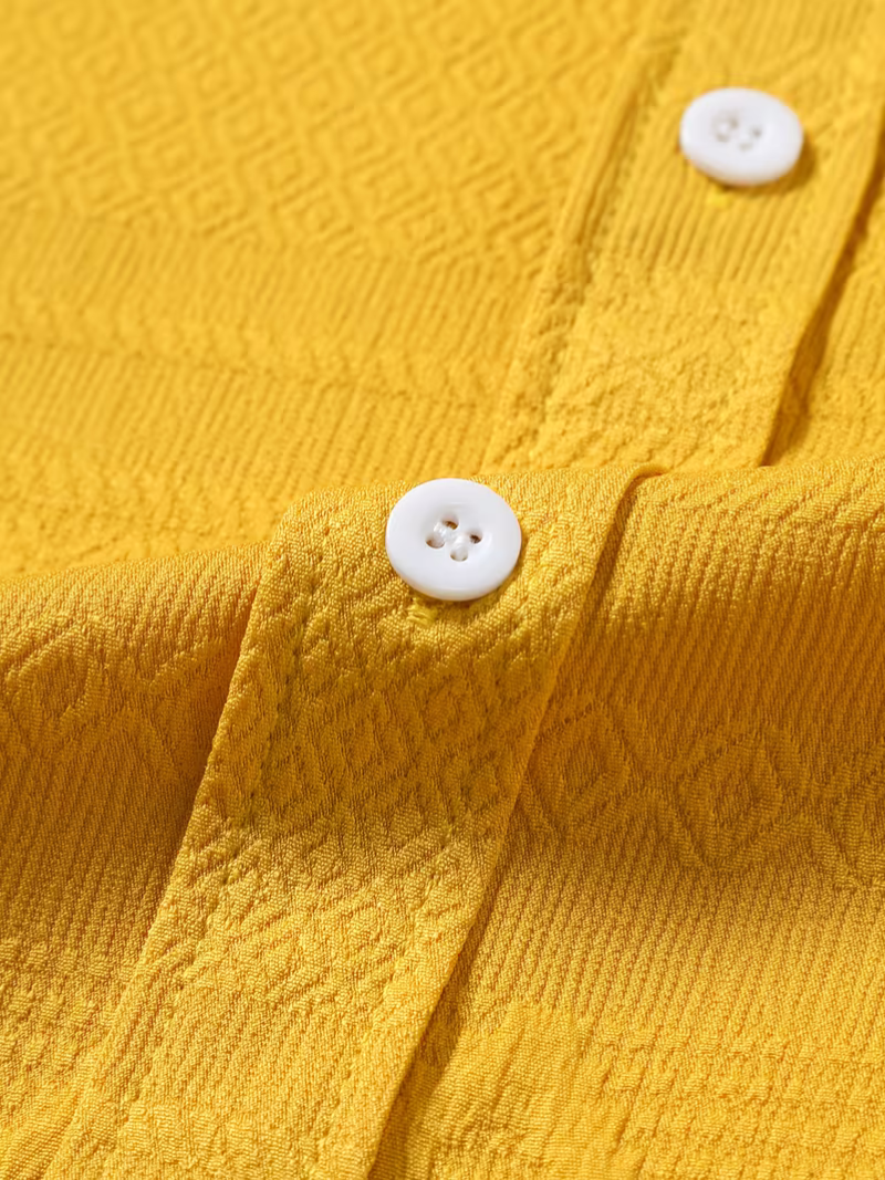 Confeccionada con un toque de elasticidad para mayor comodidad. Presenta un elegante patrón geométrico en tejido jacquard que combina sofisticación con versatilidad casual. Diseño de manga larga con solapa y cierre de botones, ideal para cualquier temporada. Su corte regular se adapta perfectamente a diferentes siluetas. Mantén su calidad lavando a mano o limpieza en seco. Una pieza versátil que eleva tu guardarropa con estilo contemporáneo.