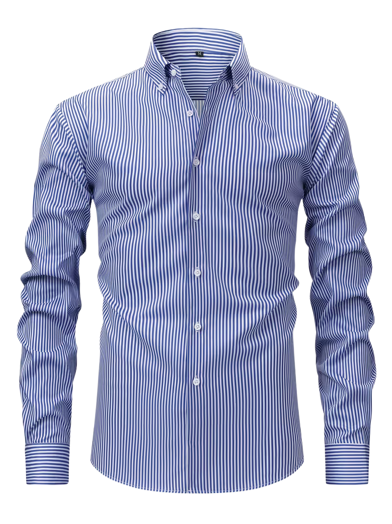 Camisa casual de rayas diseñada para máxima comodidad y transpirabilidad. Su tejido ligero con estiramiento permite libertad de movimiento, ideal para jornadas de trabajo o encuentros casuales. Cuenta con cuello de solapa versátil, manga larga tipo camisa y cierre de botones en el pecho. El estampado de rayas en estilo europeo-americano se adapta a múltiples ocasiones. Disponible en varios colores para complementar tu guardarropa. Una prenda versátil que combina funcionalidad y estilo contemporáneo. Fácil de cuidar: lavar a máquina.