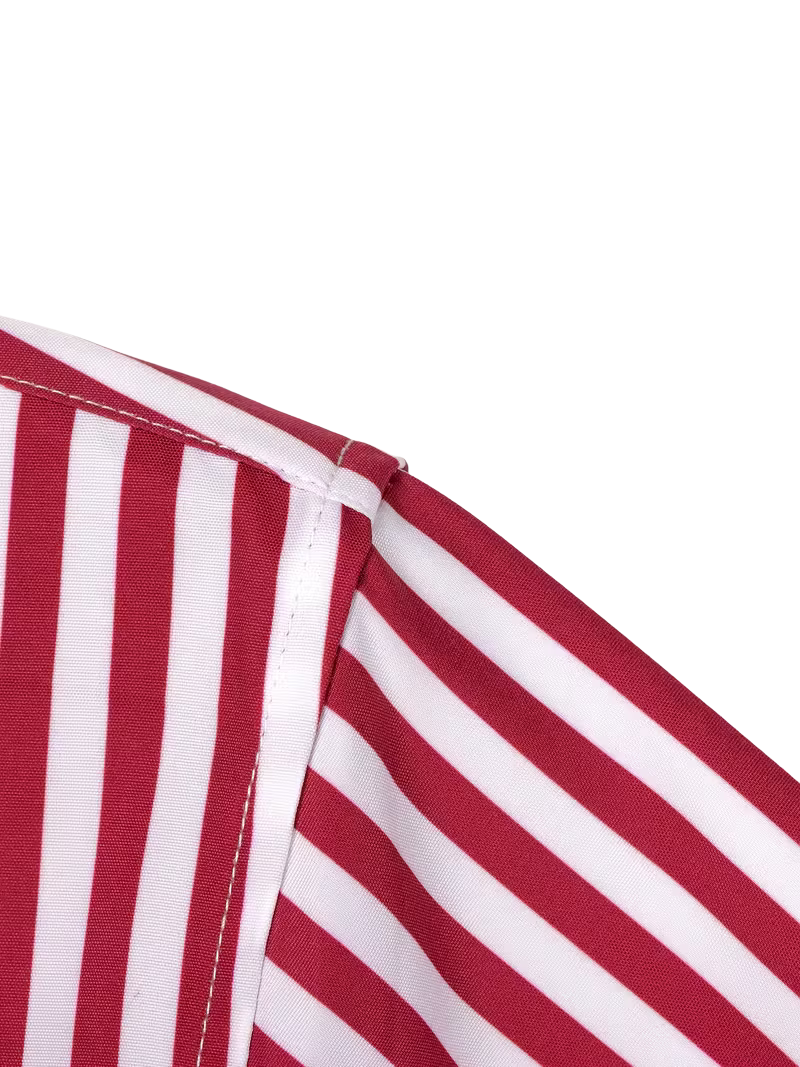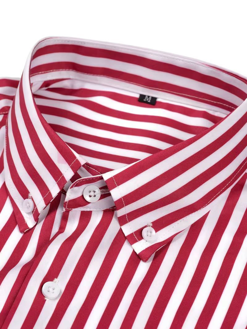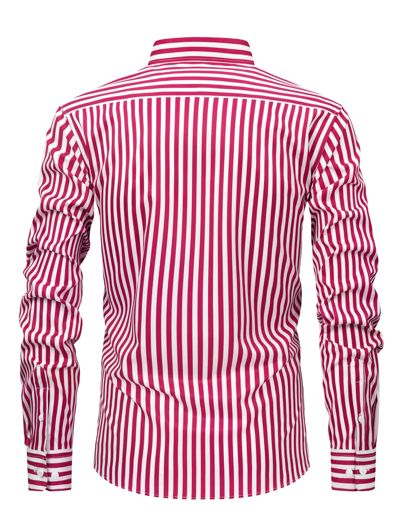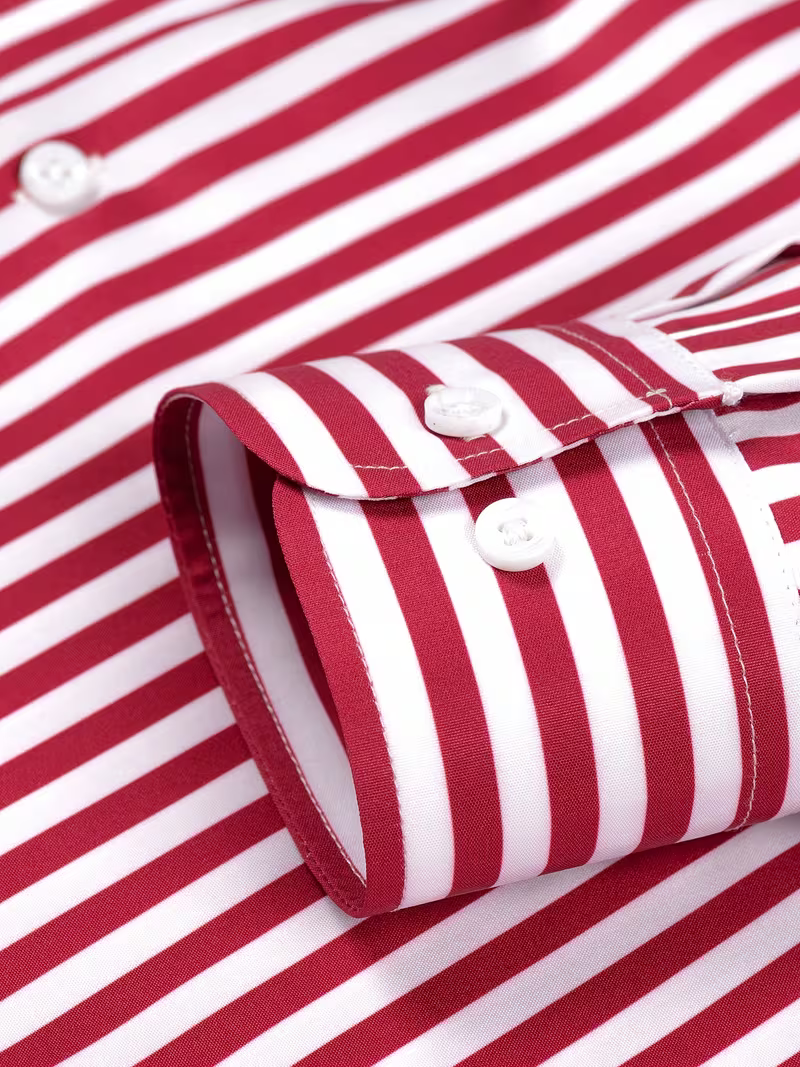 Camisa casual de rayas diseñada para máxima comodidad y transpirabilidad. Su tejido ligero con estiramiento permite libertad de movimiento, ideal para jornadas de trabajo o encuentros casuales. Cuenta con cuello de solapa versátil, manga larga tipo camisa y cierre de botones en el pecho. El estampado de rayas en estilo europeo-americano se adapta a múltiples ocasiones. Disponible en varios colores para complementar tu guardarropa. Una prenda versátil que combina funcionalidad y estilo contemporáneo. Fácil de cuidar: lavar a máquina.
