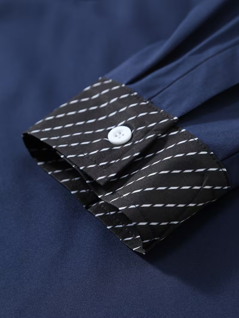 Confeccionada en tejido con ligero estiramiento, ofrece comodidad y libertad de movimiento durante todo el día. Su corte regular y cuello de solapa le dan un aspecto casual versátil, perfecto para cualquier estación. Los botones frontales facilitan el ajuste, mientras que el patrón vertical añade carácter a tu guardarropa. Ideal para quienes buscan prendas de calidad que combinen estilo y practicidad. Se recomienda lavar a mano o acudir a limpieza en seco para mantener su durabilidad.