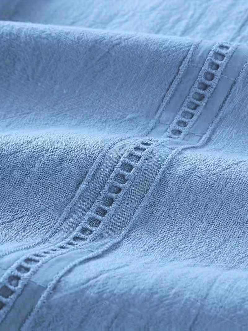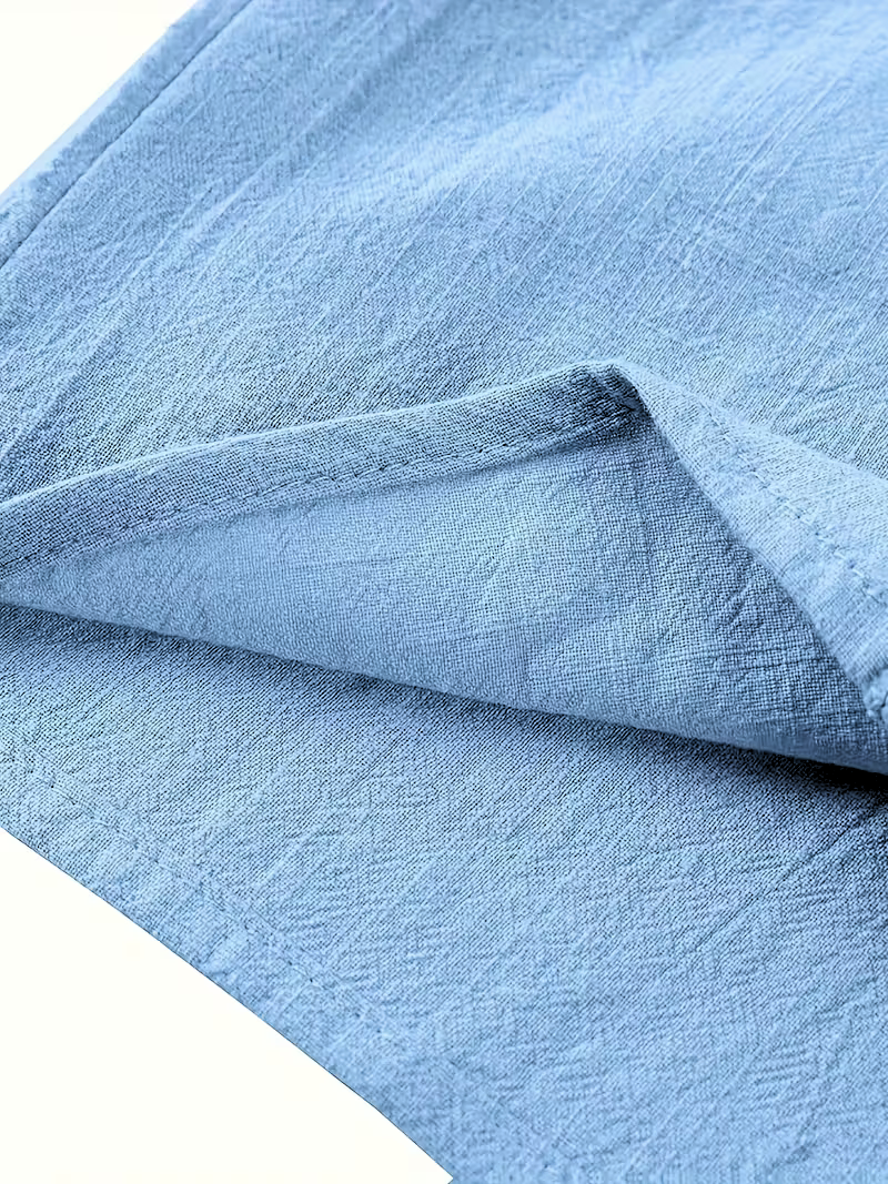 Camisa Henley color gris en algodón puro, textura ligera y transpirable ideal para días cálidos. Su diseño de manga corta, ajuste holgado y cuello con solapa proporciona libertad de movimiento y frescura. Incluye botones frontales y prácticos bolsillos en el pecho, perfectos para un look casual y funcional en la playa o en salidas informales.