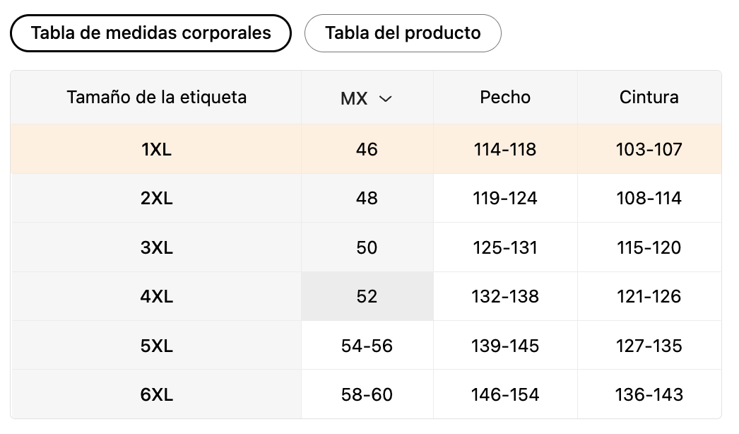 Tamaño de la etiqueta | MX | Pecho | Cintura |