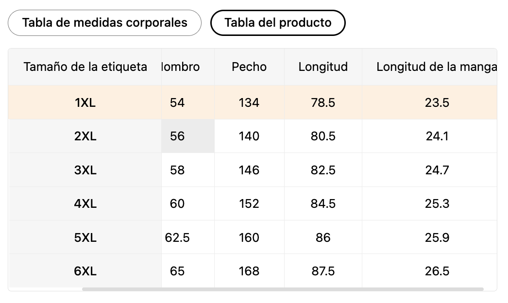 Tamaño de la etiqueta | Hombro | Pecho | Longitud | Longitud de la manga |