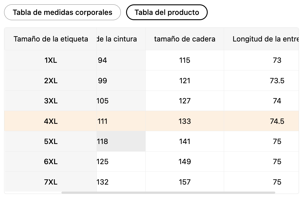 | Tamaño de la etiqueta | Cintura (cm) | Cadera (cm) | Longitud de la entrepierna (cm) |