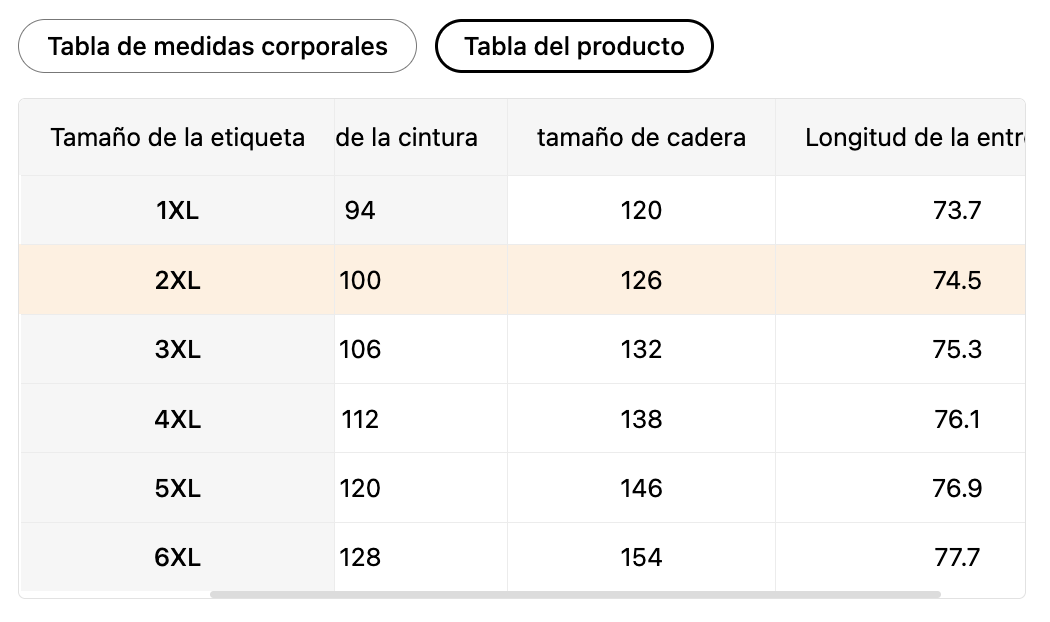 | Tamaño de la etiqueta | Cintura | Cadera | Longitud de la entrepierna |