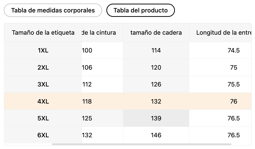 | Tamaño de la etiqueta | Cintura | Cadera | Longitud de la entrepierna |