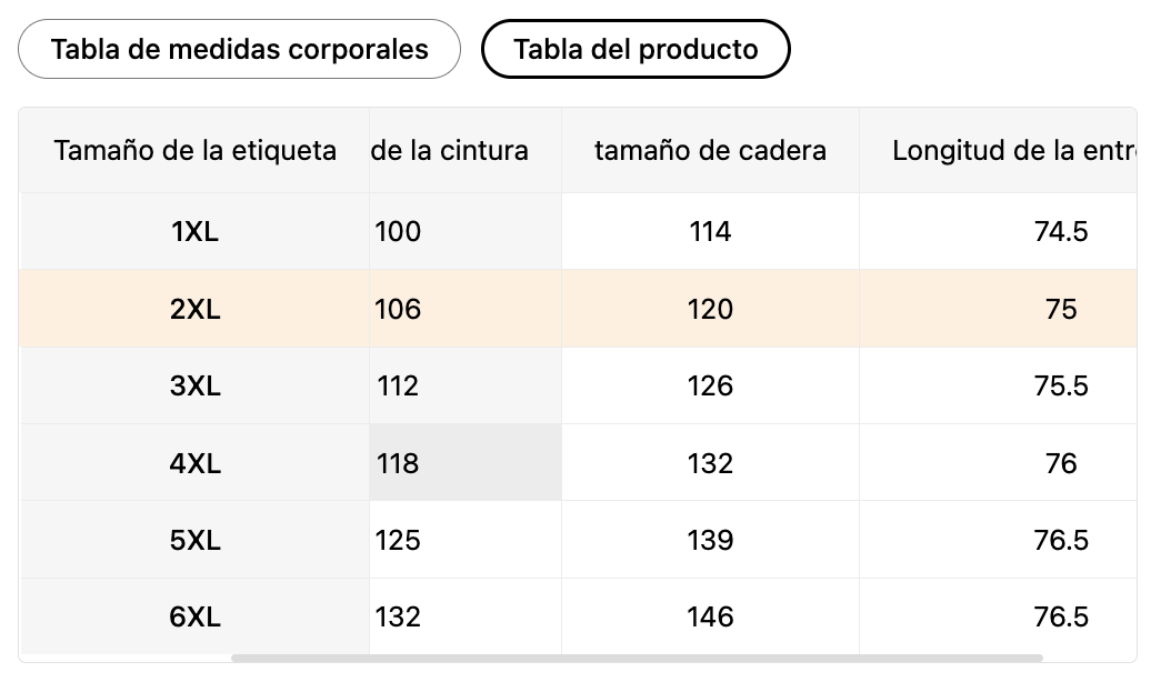 | Tamaño de la etiqueta | Cintura (cm) | Cadera (cm) | Longitud de la entrepierna (cm) |