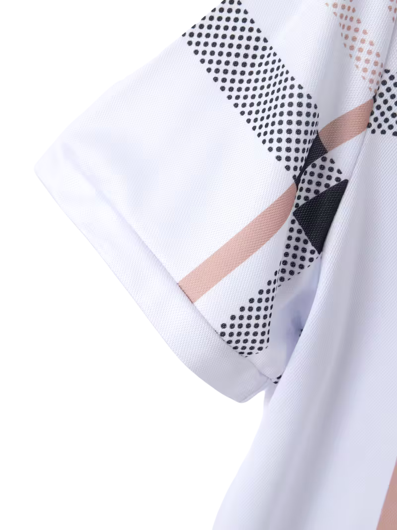 Polo blanca que combina versatilidad y estilo contemporáneo. Confeccionada con ligero estiramiento, ofrece comodidad y durabilidad para el uso diario. Su corte regular y manga corta la hacen ideal para looks casuales y semiformales, mientras que el patrón de rayas y el cuello de solapa le aportan un toque urbano distintivo. Los botones frontales facilitan el ajuste perfecto. Perfecta para la temporada de verano.