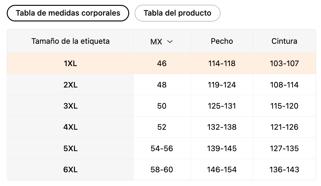 Tamaño de la etiqueta | MX | Pecho | Cintura |