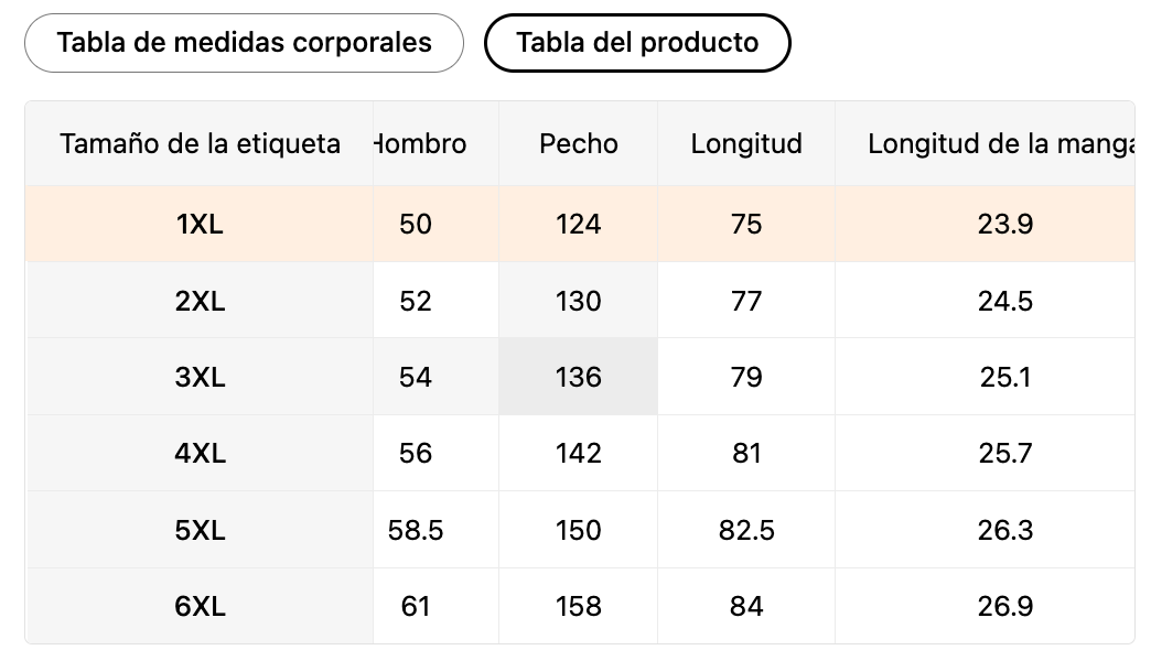 Tamaño de la etiqueta | Hombro | Pecho | Longitud | Longitud de la manga |