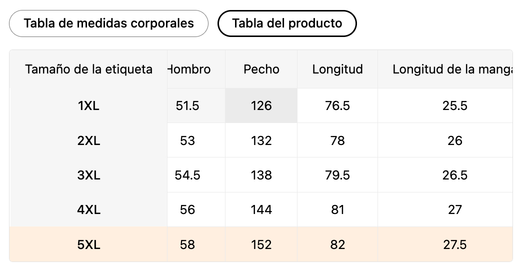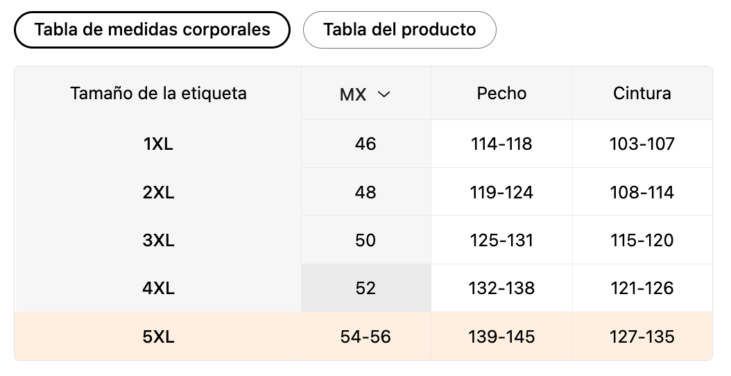 | Tamaño de la etiqueta | MX | Cintura (cm) | Caderas (cm) |