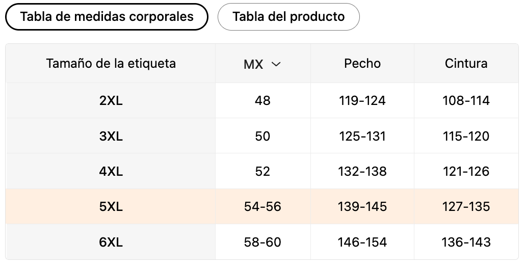 Tamaño de la etiqueta | MX | Pecho | Cintura |